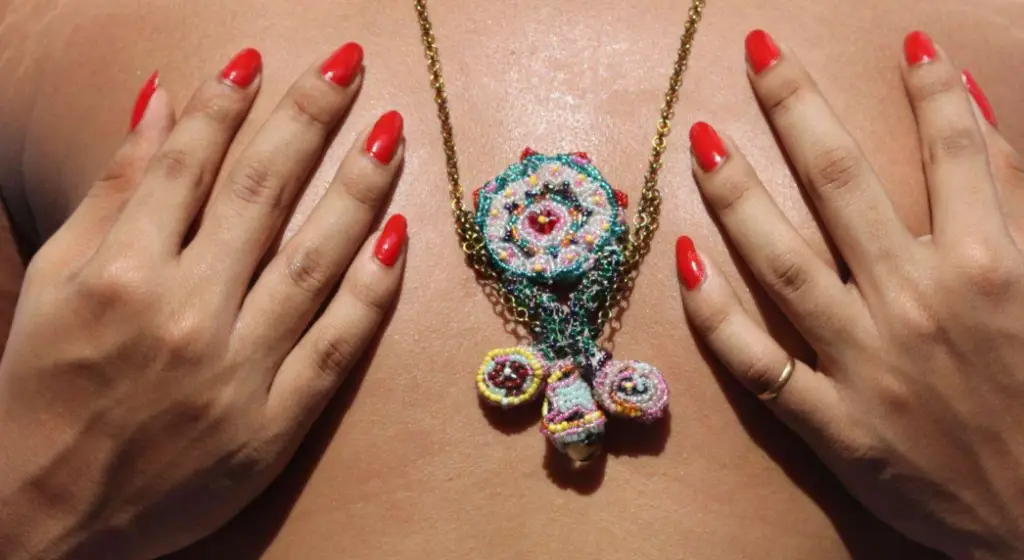Material : Glass beads, , recycled fabric, copper wire, cotton threads.